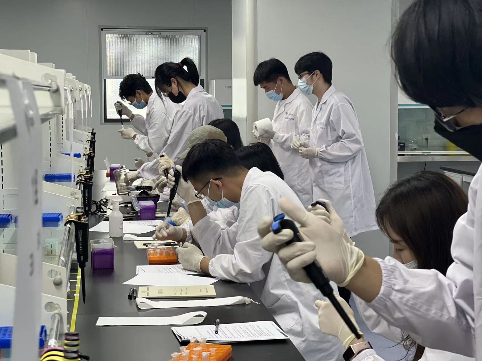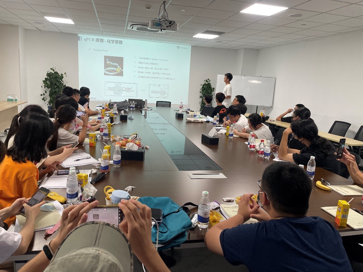 下午,工程师又为同学们进行了“荧光定量PCR”专题讲解,同学们在学习到理论知识后积极讨论,明确实验原理的各个细节。之后对上午提取的RNA样品进行操作,配置qPCR体系。在测量好实验数据后,工程师带领同学们对数据进行了细致的分析,分析曲线偏离标准的原因并再次强调了实验中规范操作的重要性,并根据同学们的提问做出了细致且精确的回答。