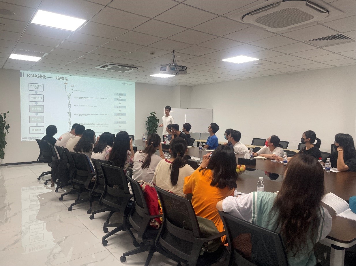 7月9日上午,诺唯赞公司工程师团队与同学和老师们热情交流。谢彦杰老师强调实习实践要求、规范,鼓励大胆发言、不懂就问。诺唯赞团队对本次同学们来访交流学习表示热烈欢迎,并表达了今后也将会大力支持诺唯赞的“菁英班”培养项目。最后刘园园老师发言,希望同学们积极思考、了解企业文化、体验企业氛围、珍惜学习机会。